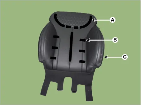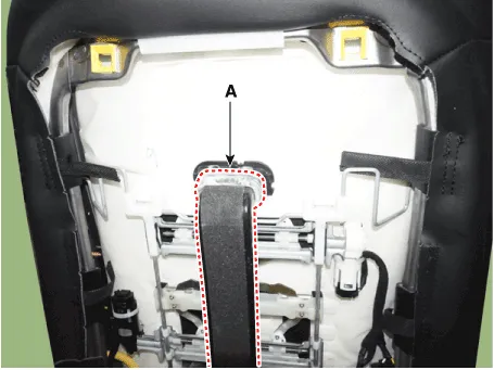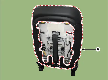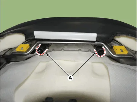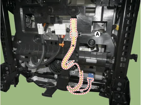 Separate the front seat airbag wiring (A) and seat back heater connector