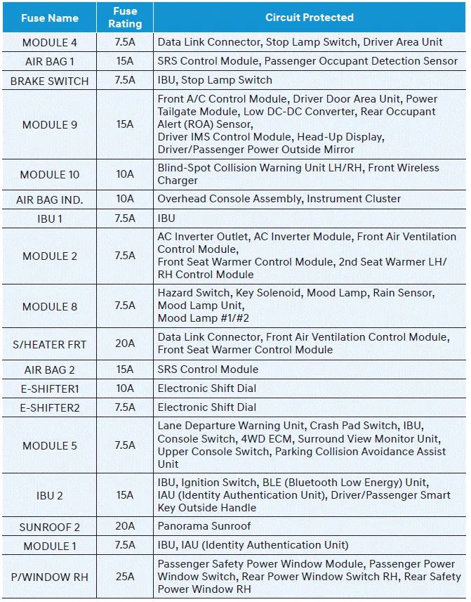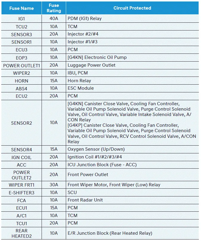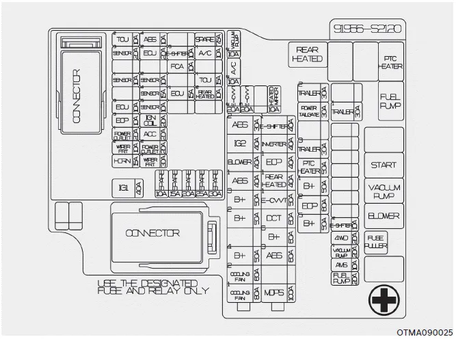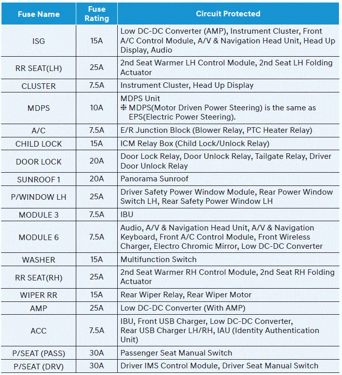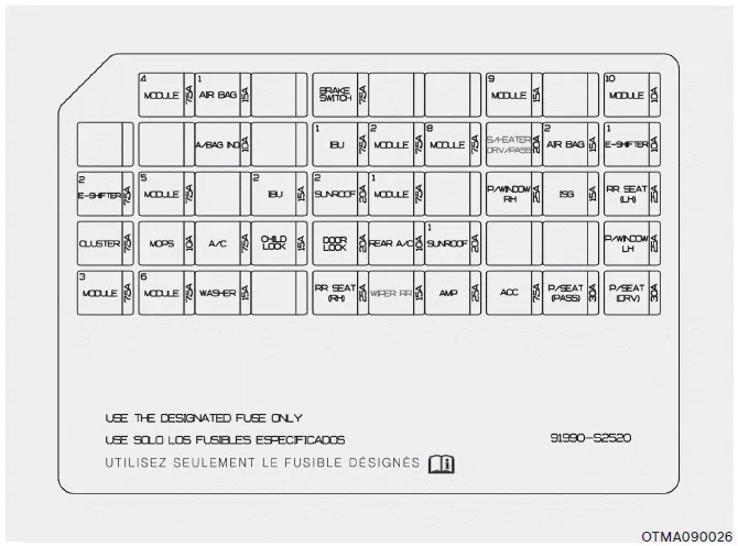 Inside the fuse/relay box cover, you can find the fuse/relay label describing fuse/ relay names and ratings.