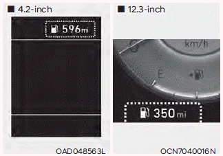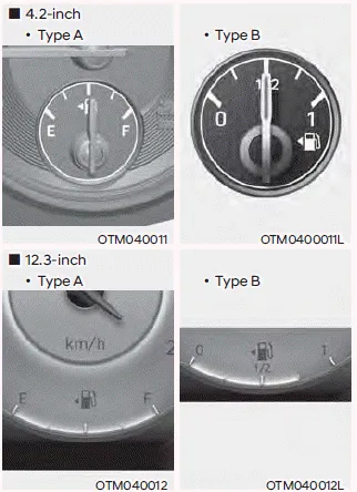 You must stop and obtain additional fuel as soon as possible after the warning light comes on or when the gauge indicator comes close to the “E (Empty) or 0” level.