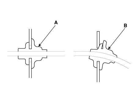 Seat grommets in their grooves properly (A). Do not leave grommets distorted