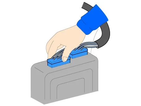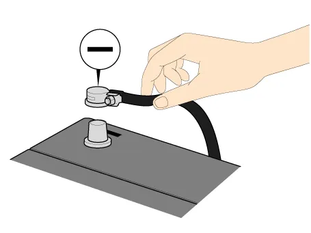 Be sure to disconnect the battery cable from the negative (-) terminal