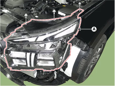 Loosen the mounting bolts and then remove the head lamp assembly (A).