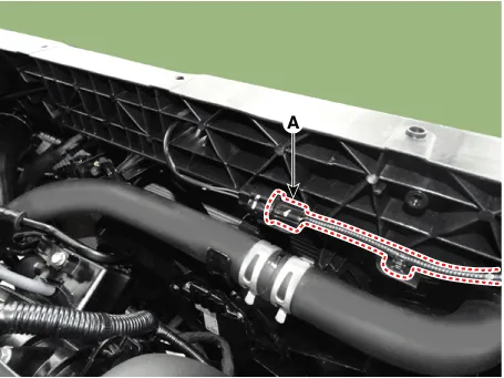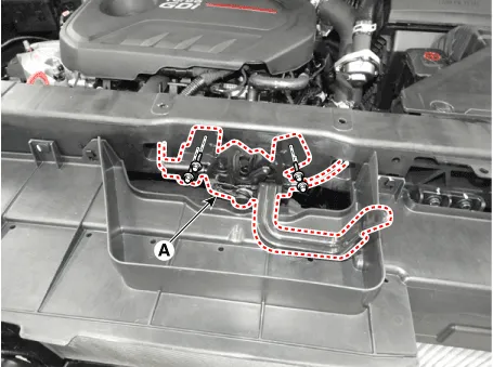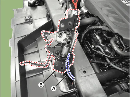 Press the rock pin to separate the hood latch connector (A) and disconnect