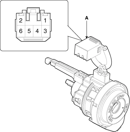 Remove the ignition switch (A) after disconnecting the 6P connector
