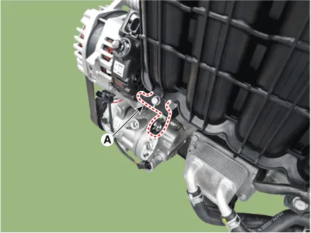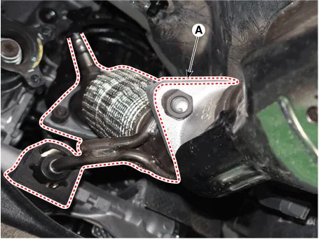 Disconnect the oxygen sensor connector (A) and then disconnect from