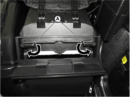 Unlock the air cleaner element camshaft (A) by turning in the direction