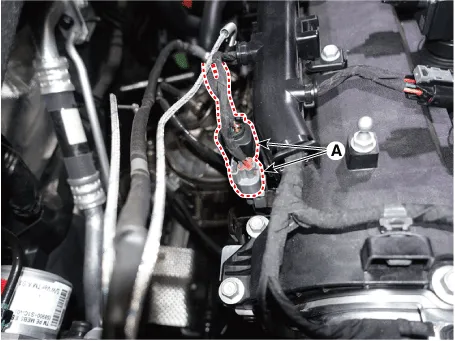 Disconnect the purge control solenoid valve (PCSV) hose (A) and vacuum