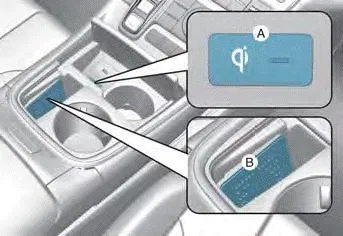 1. Remove other items, including the smart key, from the wireless charging unit. If not, the wireless charging process may be interrupted. Place the smart phone on the center of the charging pad.