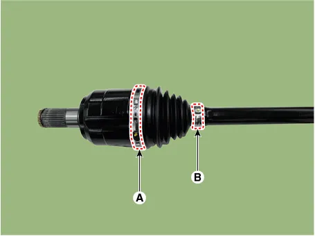Install the transaxle side joint large diameter (A) and small diameter (B) boot band.