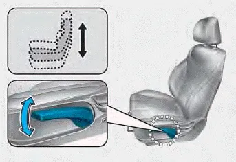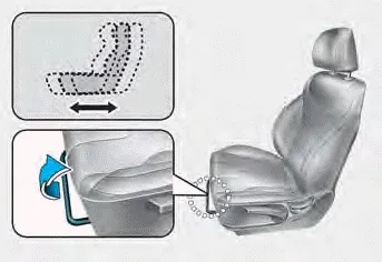 The front seat can be adjusted by using the levers located on the outside of the seat cushion. Before driving, adjust the seat to the proper position so that you can easily control the steering wheel, foot pedals and controls on the instrument panel.