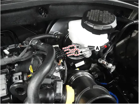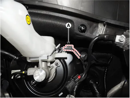 Removal [G 2.5 T-GDI THETA III (Only)] 1. Disconnect the batter ( - ) cable. 2. Remove the retaining clip then remove the vacuum pump hose (A).