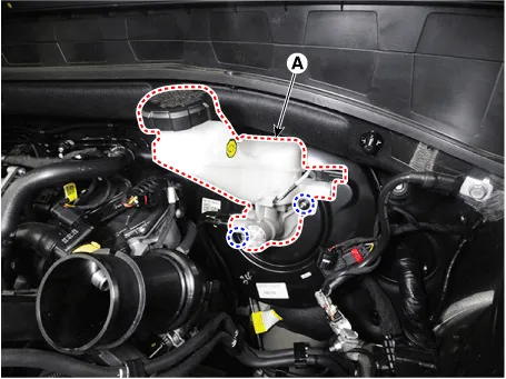 Remove the master cylinder (A) after loosening the master cylinder nuts.