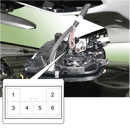 Inspection 1. Remove the room lamp assembly then check for continuity between terminals. Removal 1.