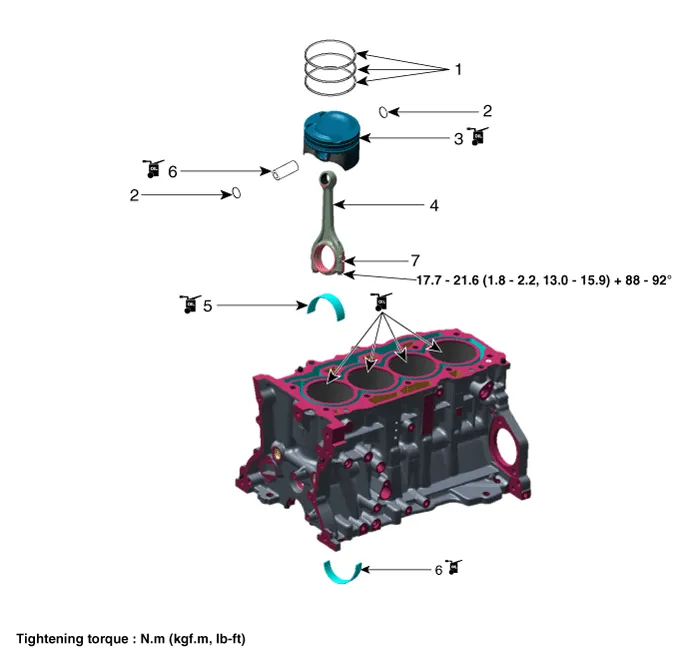 | 1. Piston ring 2. Snap ring 3. Piston 4. Connecting rod |