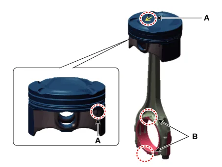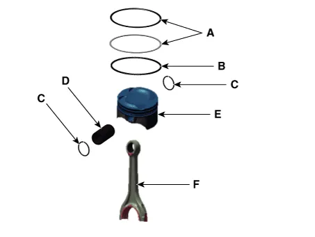 Components 1. Piston ring 2. Snap ring 3. Piston 4. Connecting rod 5. Connecting rod upper bearing 6.