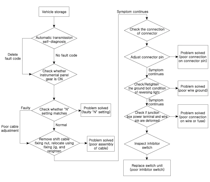 Make sure vehicle does not roll before setting shift lever to "N" position.