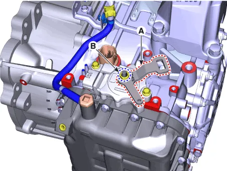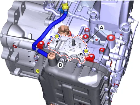 Tighten the nut (A) and bolts (B) with the specified torque.