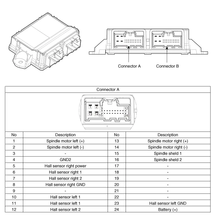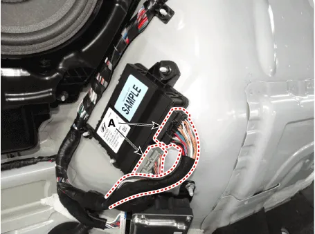 Remove the anti-pinch strip sensor connector (A).