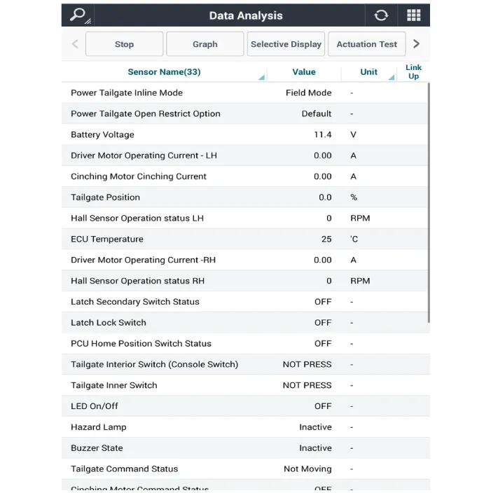 error, spindle error, CAN error, Latch closed when Tailgate open |