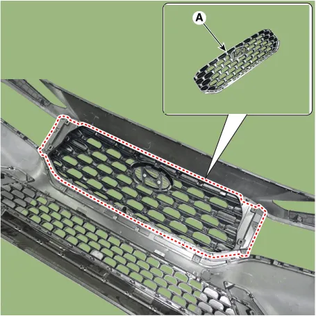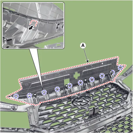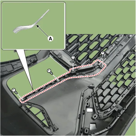 Loosen the mounting screws, remove the center front bumper molding (A).