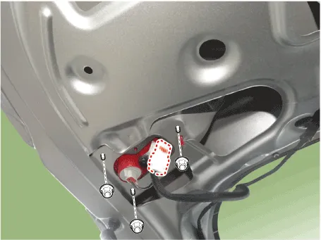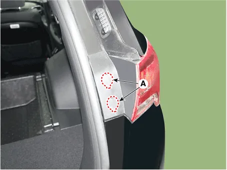 Removal 1. Disconnect the negative (-) battery terminal. 2. Remove the luggage room lamp lens (A) with a flat-tip screwdriver.