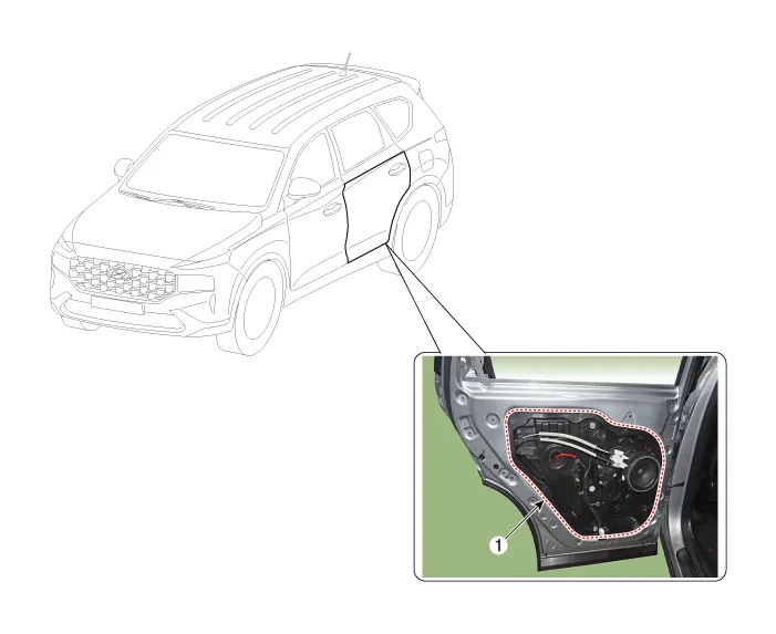 Replacement 1. Remove the rear door window glass. (Refer to Rear Door - "Rear Door Window Glass") 2.