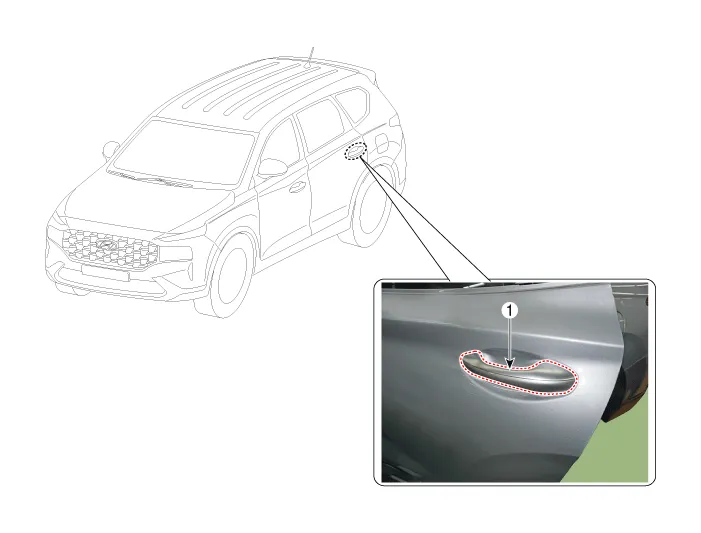 Replacement 1. Remove the plug hole and loosen the mounting bolt, remove the rear door outside handle (A). Tightening torque : 7.