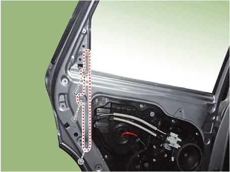 Unscrew the rear door channel mounting nut and bolt loosely.