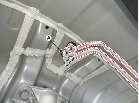 Loosen the mounting nuts and remove the refrigeration line (A).