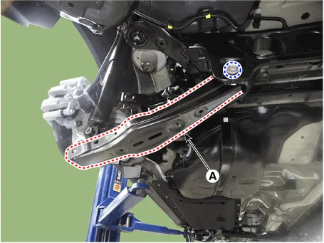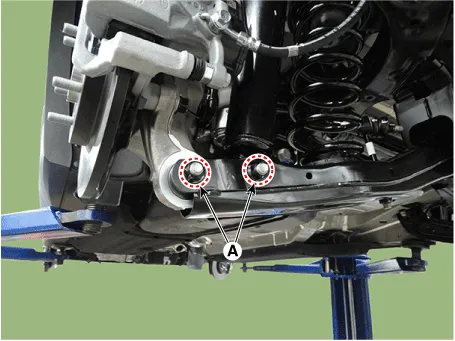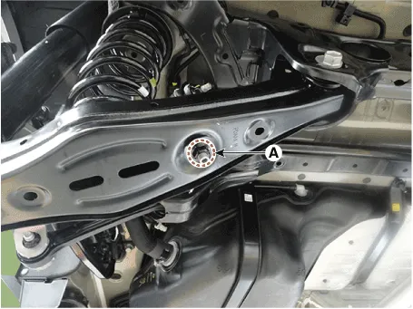 Remove the rear lower arm (A) after loosening the mounting bolt and