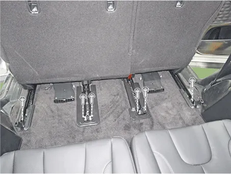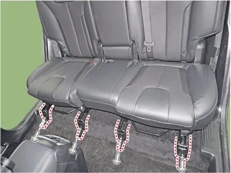 Loosen the second row seat rear mounting bolts.