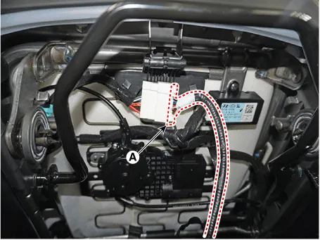 Press the lock pin and separate the connector (A).