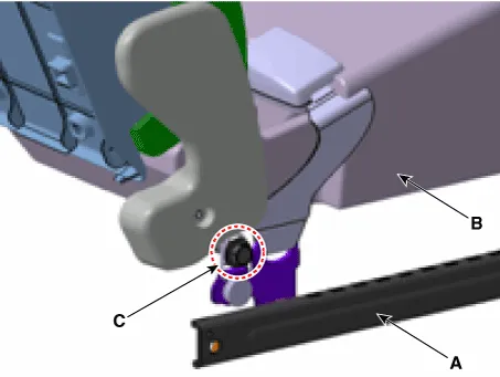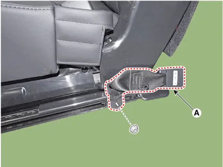 Loosen the mounting nut and remove the second row seat belt buckle (A).
