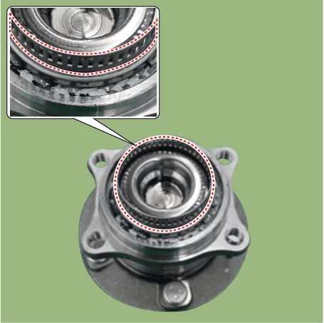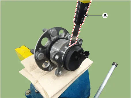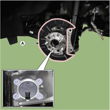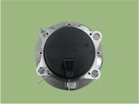 Loosen the bearing mounting bolts and then remove the hub bearing assembly
