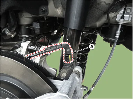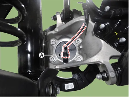Remove the rear wheel speed sensor cable braket bolt (A).