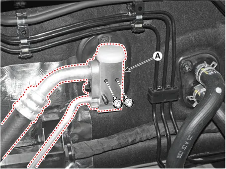 Loosen the mounting nuts, and then disconnect the discharge line (A)