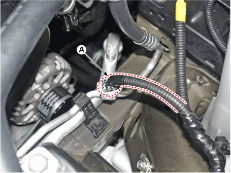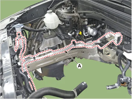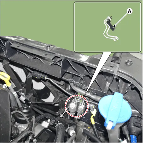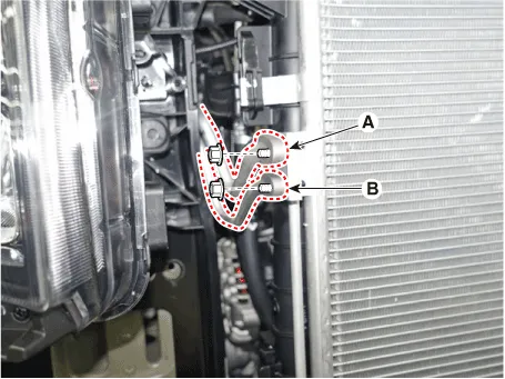 Loosen the mounting bolt, remove the refrigerant line (Condenser) (A).