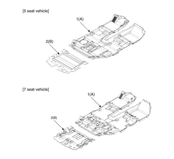 Remove the front floor carpet assembly (A) , and rear floor carpet assembly