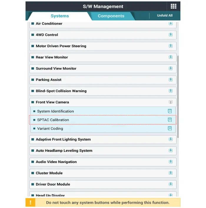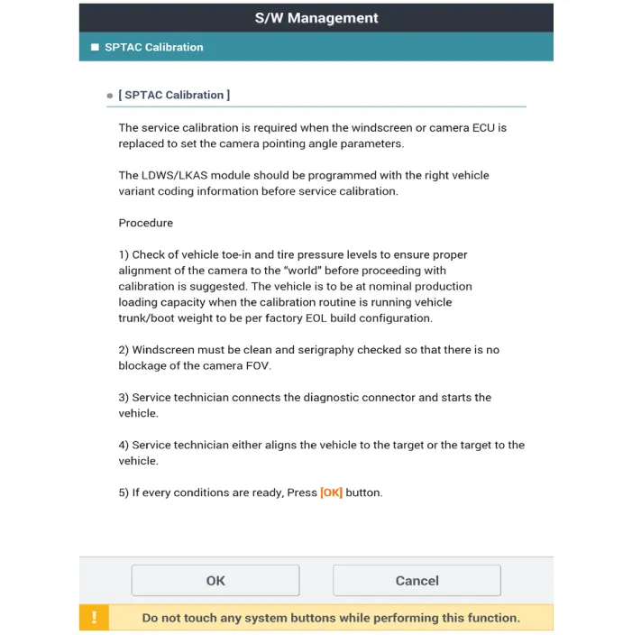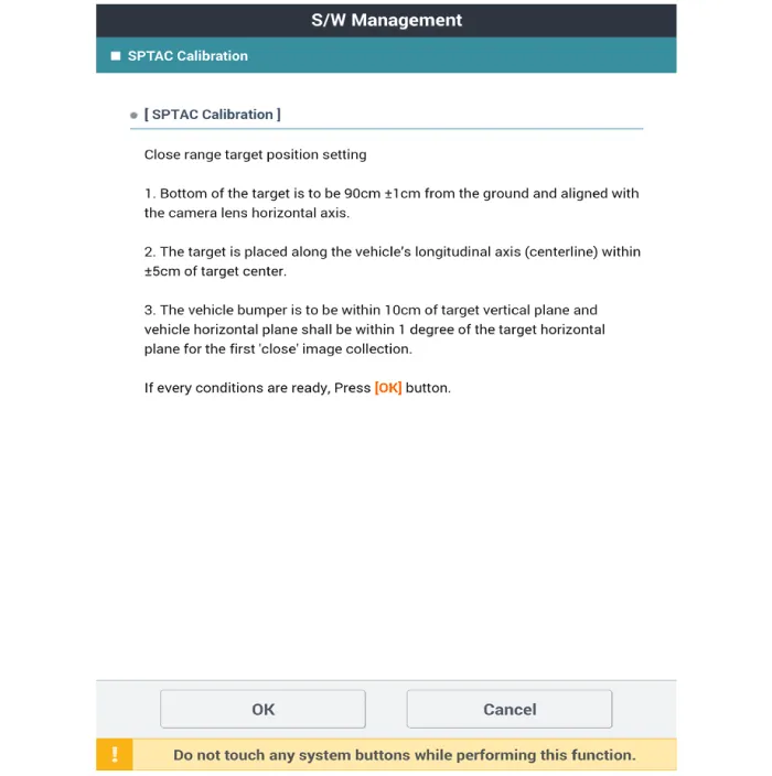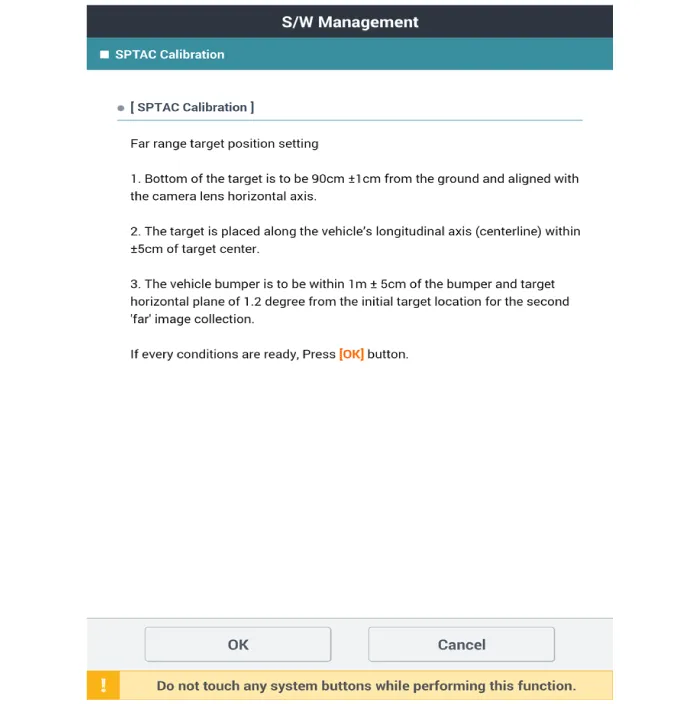 Front view camera SPTAC provides the method for the service technician to calibrate