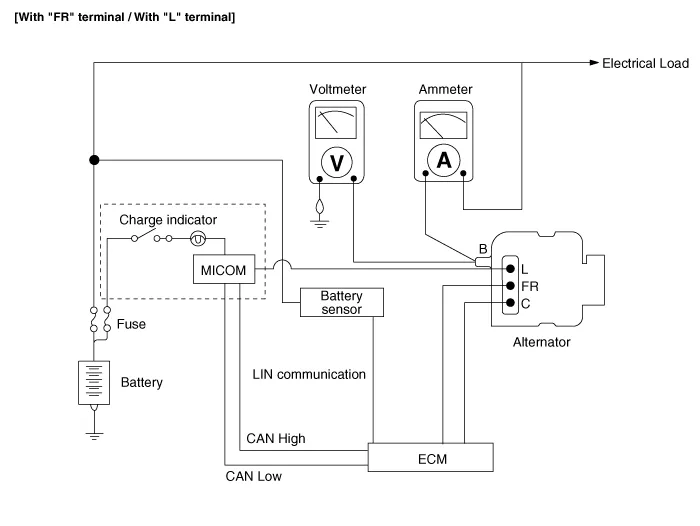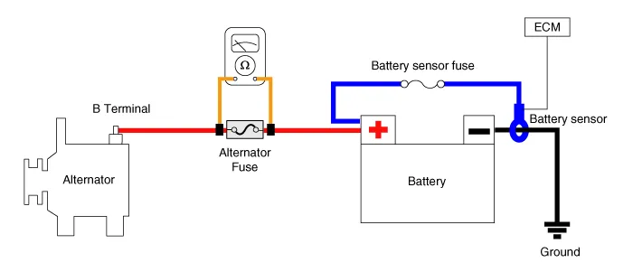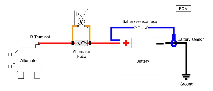 Connect the (+) lead wire of voltmeter to the "B" terminal