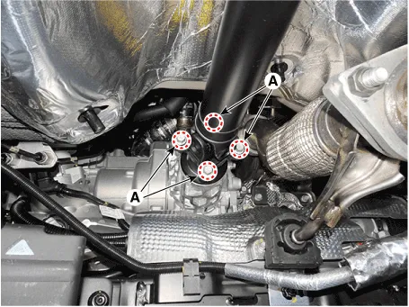 companion, remove the propeller shaft mounting bolts (A).
