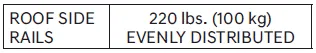 of the specified weight limit on the roof side rails may damage your vehicle.