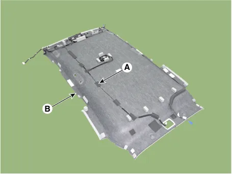 Remove roof trim wiring harness (A) from the roof trim (B).