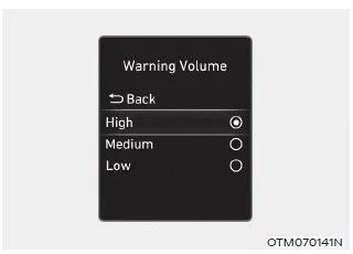 If you change the Warning Volume, the Warning Volume of other Driver Assistance systems may change.