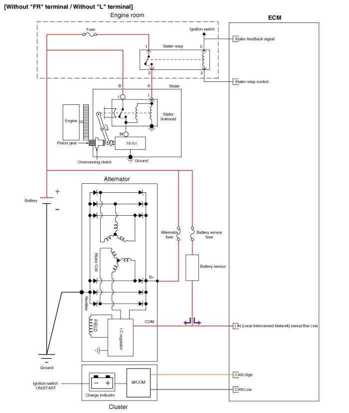 Inspection Inspection Item • Battery efficiency inspection • Battery voltage inspection • Charging voltage insptection • General inspection • Terminal tightening state inspection • Engine/ transaxle ground state inspection • Wiring harness ground state inspection • Electrical Specified Value Inspection • Vehicle parasitic current inspection • Battery capacity inspection Battery Efficiency Inspection • Check that the battery cables are connected to the correct terminals.