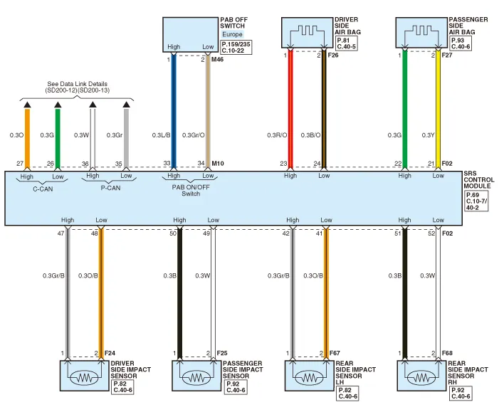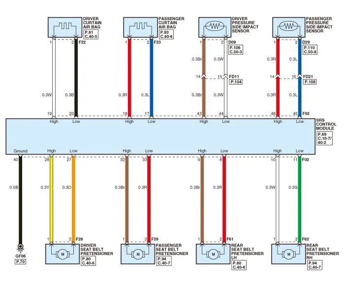 Components 1. Supplemental Restraint System Control Module (SRSCM) 2. Gravity side impact sensor (G-SIS) _ C pillar 3.