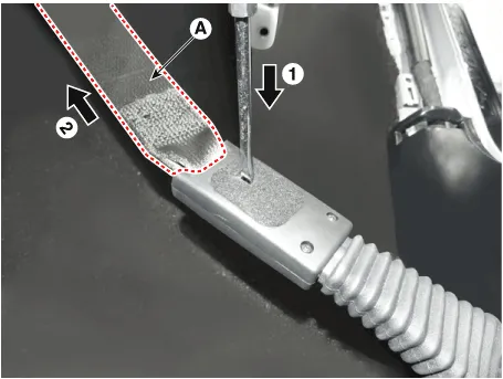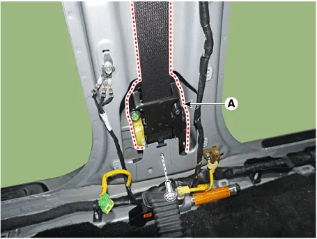Remove the seat belt pretensioner (A) after loosening the mouning bolts.
