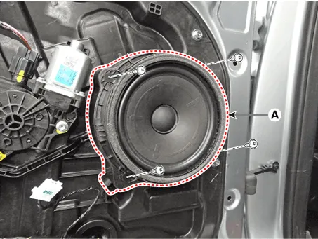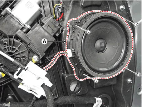 Remove the tweeter speaker (A) by loosening the screw and then disconnect