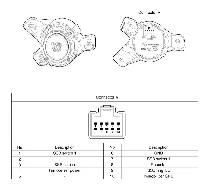 Component Location 1. Start Stop Button(SSB) 2. FOB key 3. Tailgate open switch 4. Interior antenna 1 5. Interior antenna 2 6.