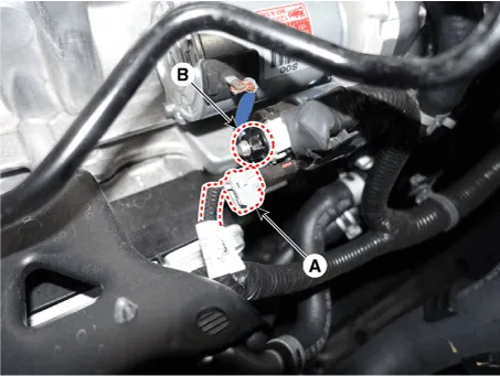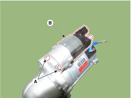 Disconnect the M-terminal (A) on the magnetic switch assembly.